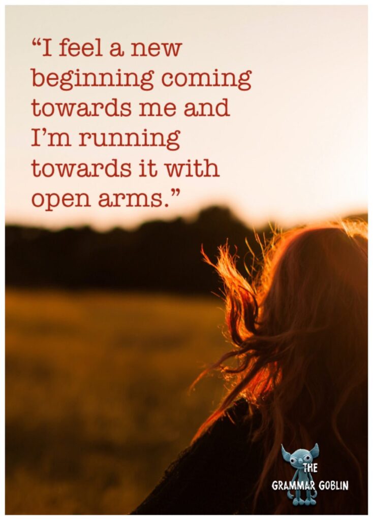 “I feel a new beginning coming towards me and I’m running towards it with open arms.”